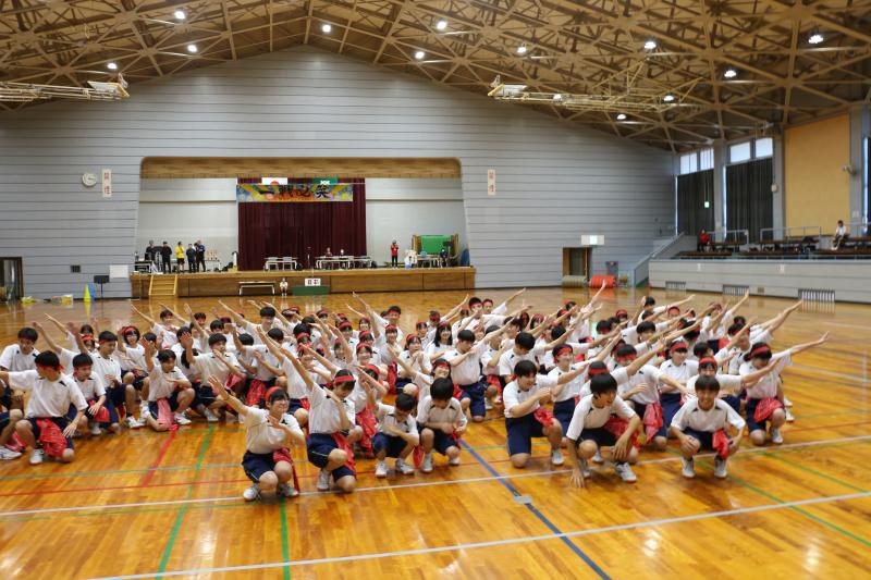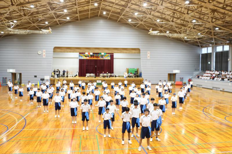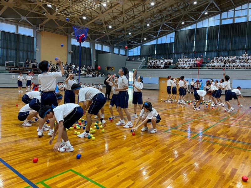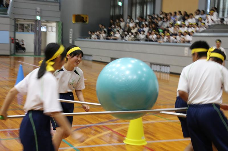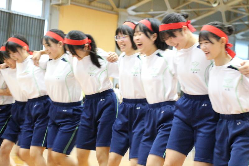2日目の体育祭は、羽咋体育館に場所を移して、各種競技や集団演技を行いました。競技では、懸命に競技する選手、それを応援をする仲間など縦割り集団として、一丸となった熱い戦いが繰り広げられました。