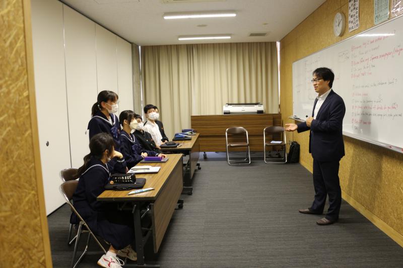 レストラン、買い物、観光、入国審査、飛行機の5つの場面を設定し、そこで働く方々と話すときに必要な英会話を学んだり、異文化の情報に触れたりして、学習するというもので、どの生徒も意欲的に参加することができていました。