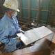 隙間が狭いため充填材が十分に入っていかず、「難しい~」と苦戦しながら少しずつ作業していました。