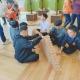 エプロン姿が建築コースの3年生です。遊んでいるというより、『遊んでもらって』います。