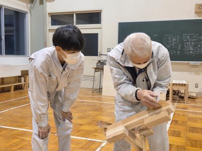 今日も大工さんに教えに来ていただき、技能検定の練習をしました。