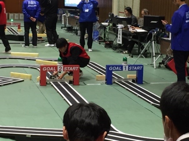 黒いコース上に白いセンターラインが引いてありこれを辿って走るマイコンカー(ラインとレースカー)の北信越大会及び全国大会出場と完走を目指して製作と参加