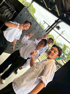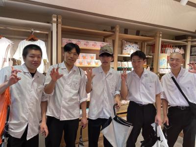 にぎやかな街並みの中で、生徒たちの笑顔があふれています