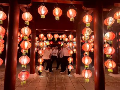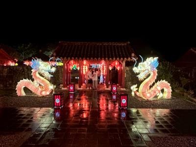 敷地内では、ちょうど2日間限定のランタンフェスティバルが開催されており、色とりどりのランタンが夜空を優しく照らしています