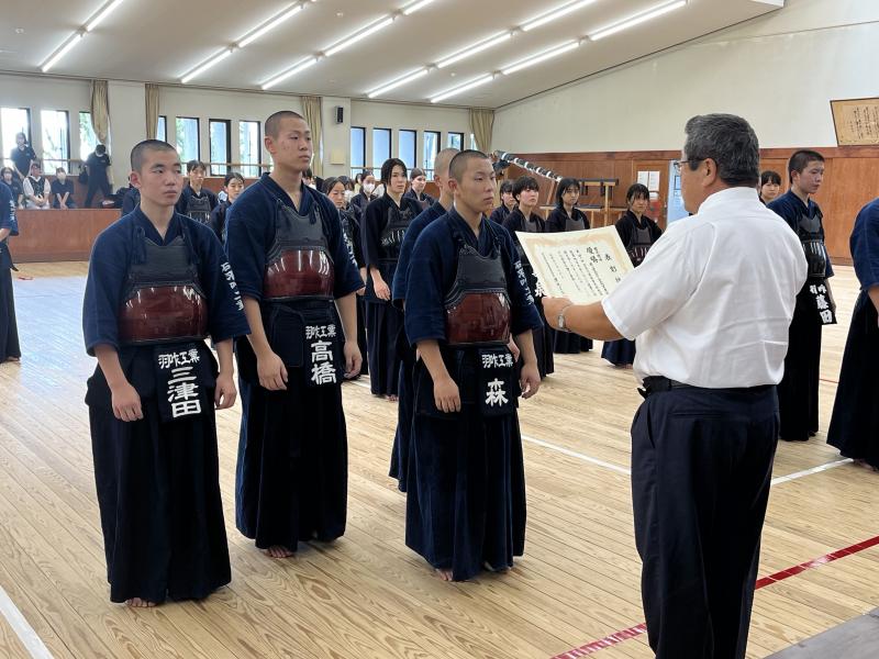 6日は個人準々決勝が行われ、九州学院(熊本)の森選手に対して先行のドを決めましたが相手にも取られ、延長戦30分近くの激闘を繰り広げましたが個人ベスト8になりました。本校森主将は優秀選手に選出され、表彰式で受賞されました。暑くて長い日程の中選手たちは普段の練習が功を奏し体調を崩すことなく頑張り続けました。来年はこの雪辱を晴らすべく更なる健闘を誓います。応援、ご支援していただいた卒業生、後援者、保護者、職員、関係者の皆様に感謝するとともに更なる飛躍を実現するべく稽古に励みます。ありがとうございました。