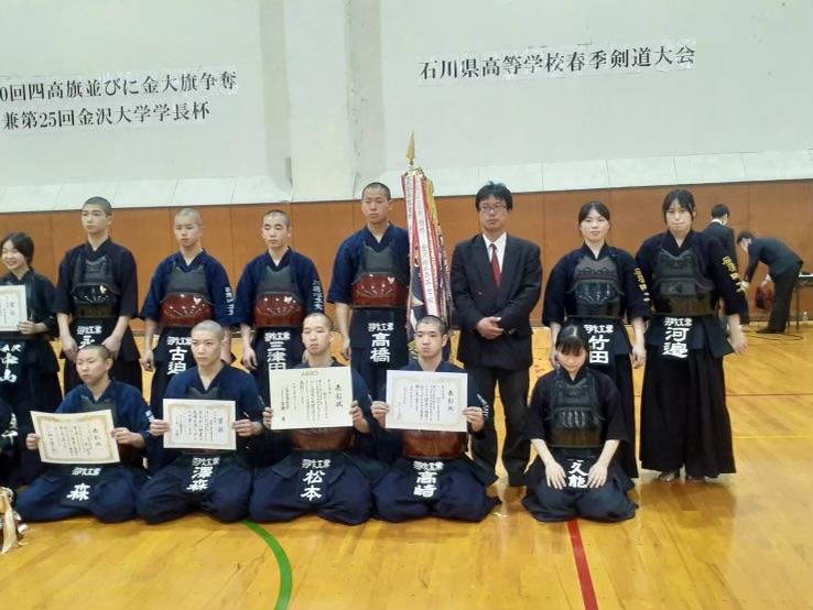 - 6/1 5月30日から行われていた令和6年度石川県高等学校総合体育大会剣道競技で本校剣道部が先日の男子個人戦に続き男子団体でも優勝しました。学校長を始めとする職員や保護者、卒業生の温かい応援や支援のおかげで成し遂げられたと感謝いたします。今後は北信越大会やインターハイでも上位入賞すべく練習に励んでいきますので応援のほどよろしくお願いいたします。