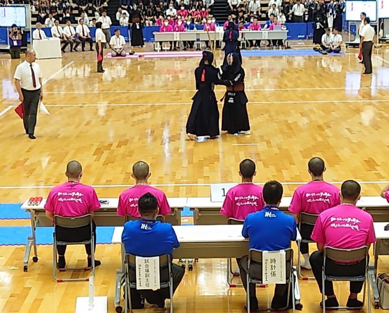 6日は個人準々決勝が行われ、九州学院(熊本)の森選手に対して先行のドを決めましたが相手にも取られ、延長戦30分近くの激闘を繰り広げましたが個人ベスト8になりました。本校森主将は優秀選手に選出され、表彰式で受賞されました。暑くて長い日程の中選手たちは普段の練習が功を奏し体調を崩すことなく頑張り続けました。来年はこの雪辱を晴らすべく更なる健闘を誓います。応援、ご支援していただいた卒業生、後援者、保護者、職員、関係者の皆様に感謝するとともに更なる飛躍を実現するべく稽古に励みます。ありがとうございました。