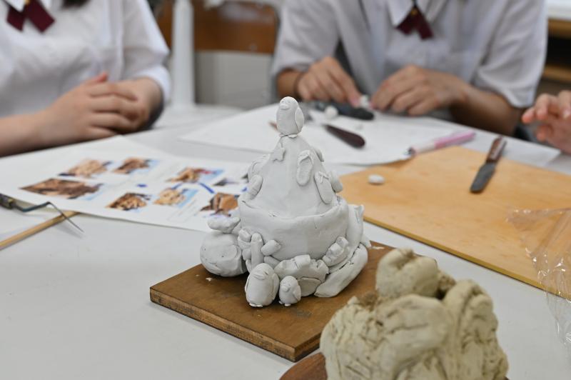 本日、美術・デザイン部では、3年生を送る会を行いました。部を引退する3年生への感謝と激励の気持ちを込めて、今年は**「モノづくり」体験**を通して絆を深める企画を実施しました美術・図工