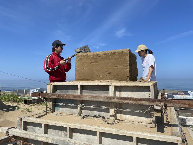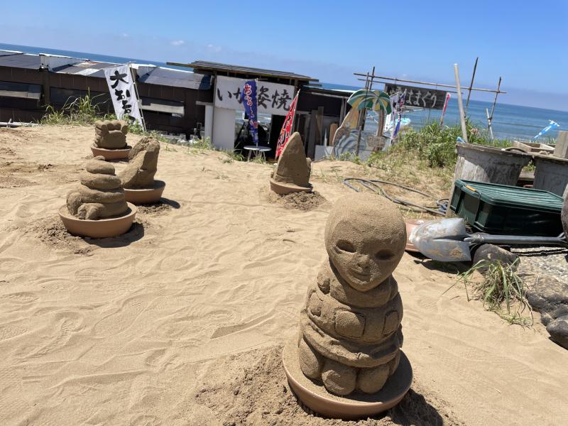 美術デザイン部は、今週から千里浜レストハウス横で砂像制作を開始しました晴れ