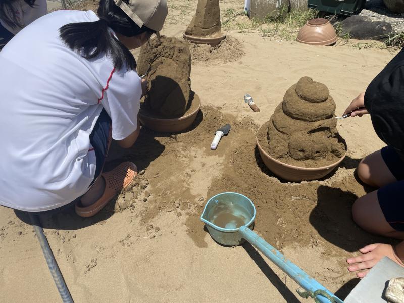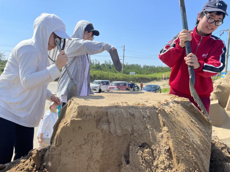 4日間暑い日が続きましたが、生徒たちは一生懸命砂像制作に取り組んでいました晴れ