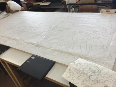 今日は、枠を外し1番上の段と2番目の段の途中までの制作となりました。