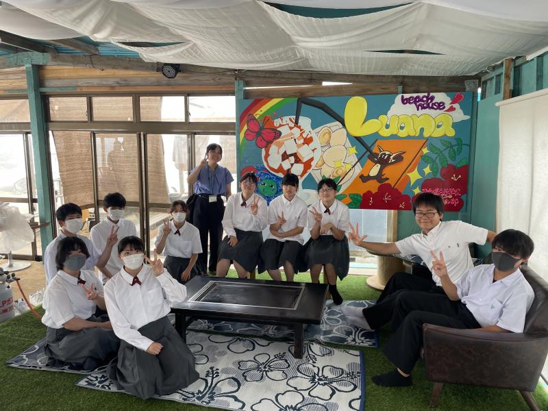 4~6月の期間、美術・デザイン部1年生主体で宝達志水町今浜海岸にある「ビーチカフェ・ルアナ」の看板制作に携わりました。