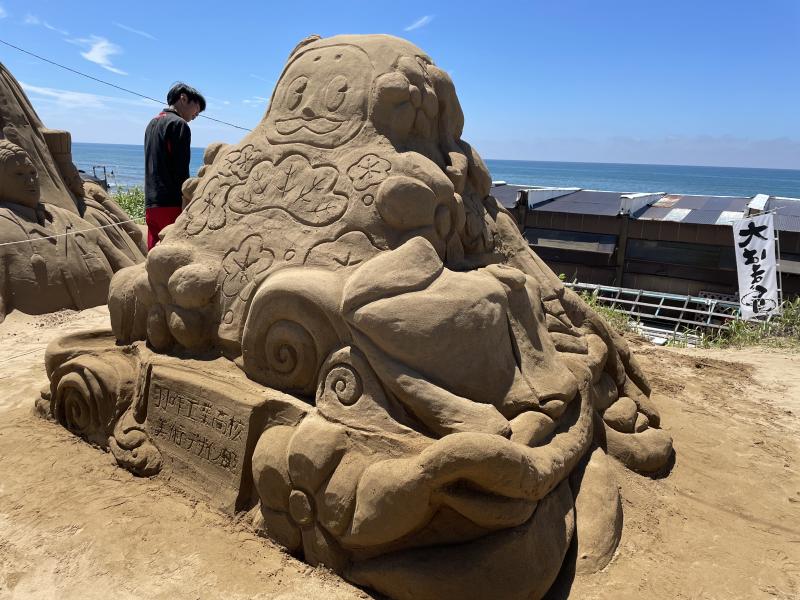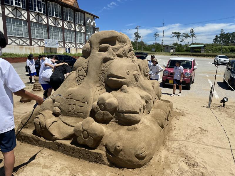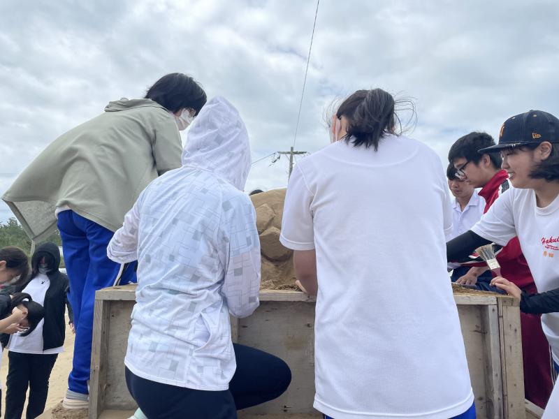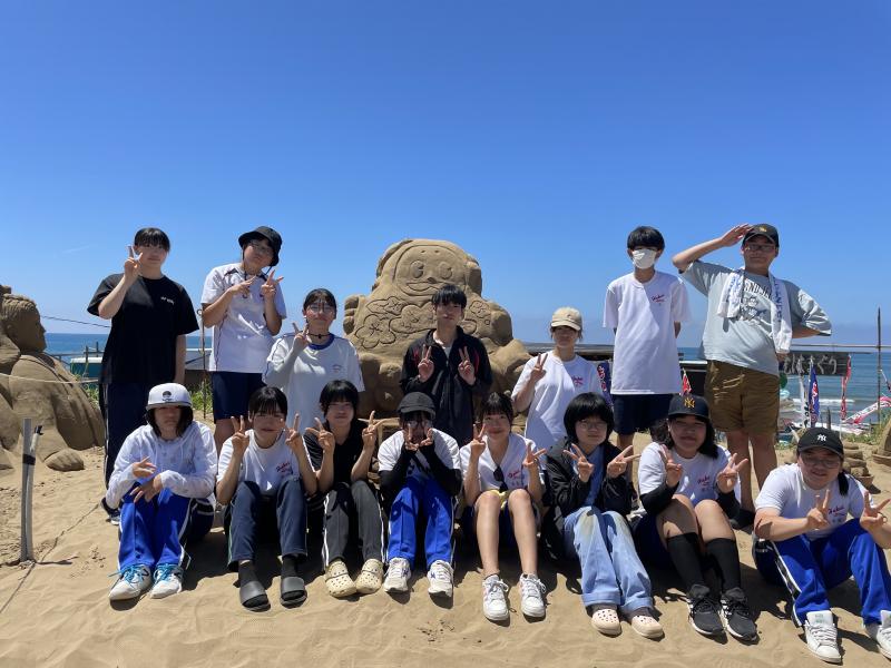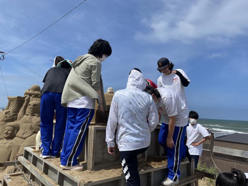 普段は個人での活動が多い美術・デザイン部ですが、砂像制作で仲間たちと1つの作品を作り上げる喜びや感動を分かち合えたのではないでしょうか。