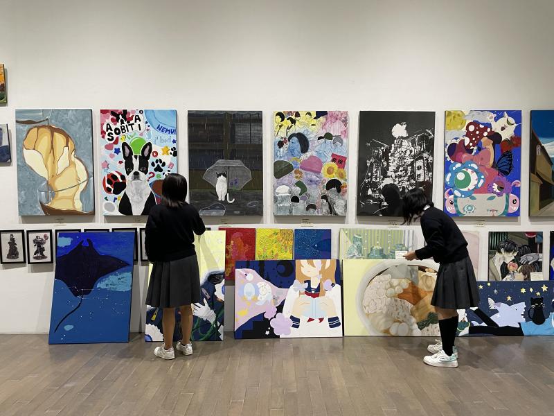 アクリル画、油絵、彫刻、デザイン、イラストレーションなど、それぞれが時間をかけてテーマを掘り下げ、表現技法を試行錯誤しながら、渾身の一作を生み出そうと日々努力しています。この美術展は、日頃の活動の成果を発表する大切な舞台です。