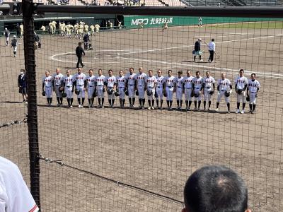 毎回安打で走者を出すも三塁まで進むことができず、5回表にようやく一死満塁から犠飛で1点を取ることができましたが、1-14xで敗退しました。
