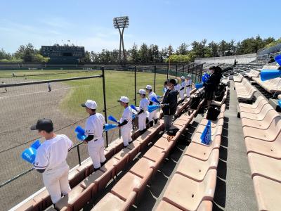今日明日は、陸前高田市の奇跡の一本松球場で試合をさせていただきます。