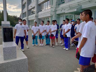 最後に甲子園出場の記念碑や室内練習場を案内してもらい、短い間でしたが、部員たちは別れを惜しんでいました。