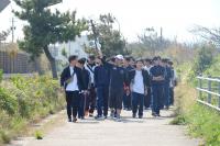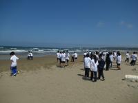 隣接する釜屋海岸の清掃ボランティア(あと校舎内落ち葉拾いも)を実施しました。
