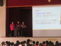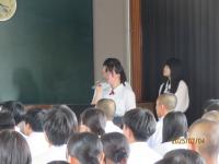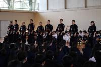 新1年生に向けて、部活動紹介が行われました。本校には13の運動部と、7の文化部があります。各部の代表生徒がそれぞれの部活動の魅力を1年生にアピールしていました。中にはパフォーマンスを取り入れたり、楽しいトークで盛り上げてくれる生徒もいました。