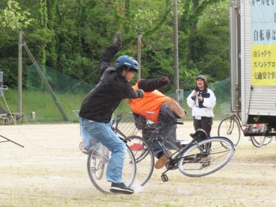 本日、(有)シャドウスタントプロダクション交通安全事業部の方にお越しいただき、スタントマンによる自転車安全教室が実施されました。
