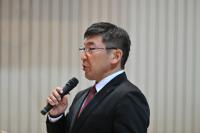 同窓会入会式では、同窓会会長 河崎祐彦 様の挨拶のあと、代表32H石川晴海が 代表の挨拶を行いました。