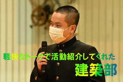 部活動紹介が行われました。各部活動の代表生徒が新1年生に部活動紹介をしました。実演やパフォーマンスを取り入れた楽しい紹介をしてくれた生徒もいました。