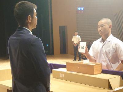 抽選会で主将の畠中徹平(3年)が引いたのは、