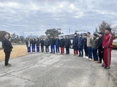 出陣式で校長が激励してくれました。「勝ち負けは大切だが、今は、能登の人々の辛く苦しい思いを感じ、人々を少しでも元気づけるため、高校生としてできることをしなさい。タックルにこの気持ちをぶつけてこい!」
