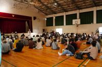 午前9時00分に羽咋市千里浜海岸沖を震源とするマグニチュード7.6、震度7の地震が発生し、津波警報が発令されたという想定のもと、地域と連携して避難訓練を実施しました。釜屋町・大川町・柳田町の住民の方々を避難場所に指定されている本校へ、生徒たちが誘導しました。また、生徒が負傷者役の住民の方を車いすや担架で運びました。