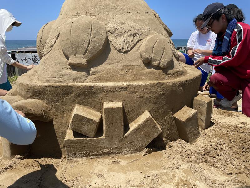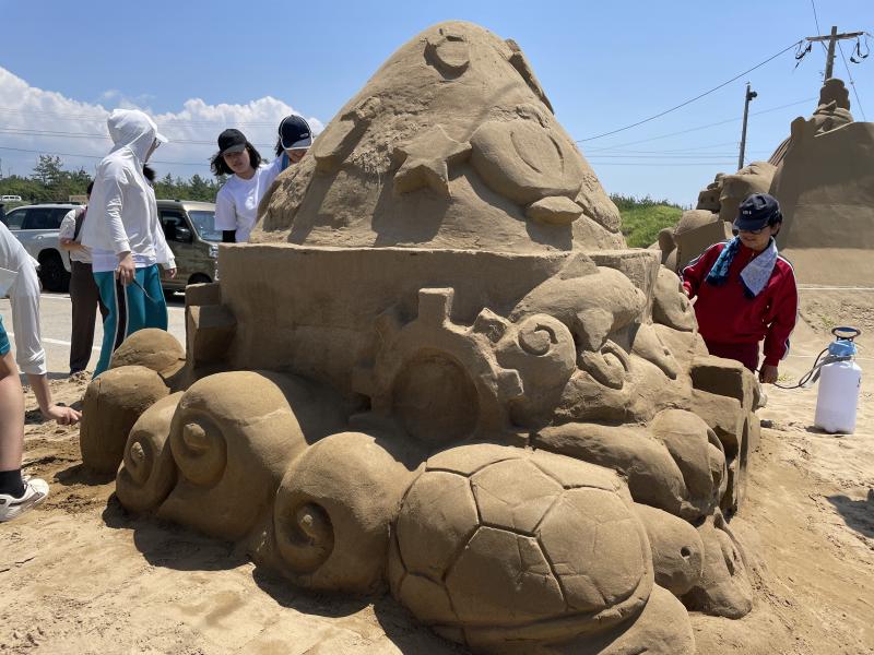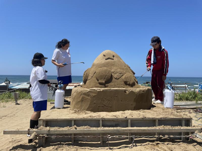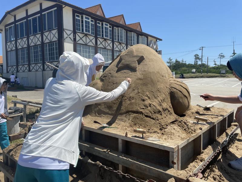 普段は個人での活動が多い美術・デザイン部ですが、砂像制作で仲間たちと1つの作品を作り上げる喜びや感動を分かち合えたのではないでしょうか。