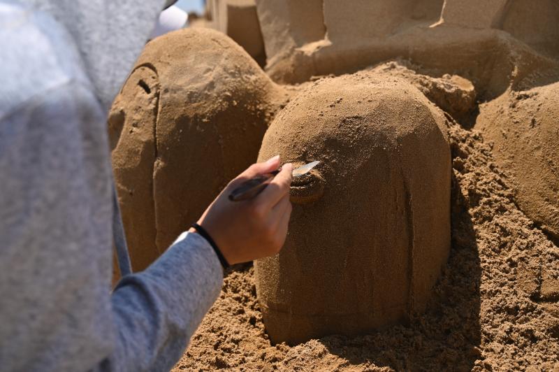 ③砂像は、1度砂を削り取ってしまうとなかなか修復が難しいです。なので、集中しながらコツコツと掘り進めていきます。