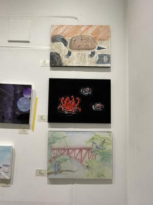 羽咋工業高等学校美術・デザイン部では、平面作品を7点展示してあります。3年生は最後の県総文になります。どれも力が入った良い作品ばかりです。