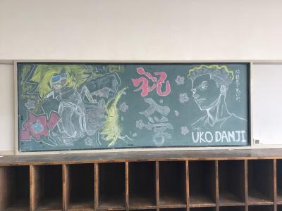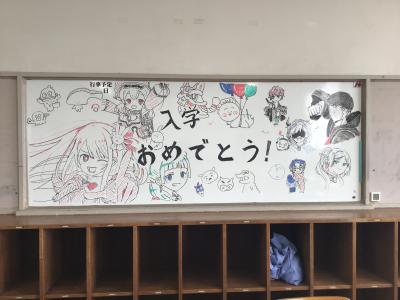 美術デザイン部の2・3年生が春休みに描いた黒板アートです。
