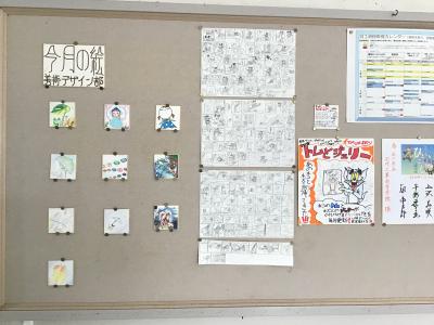 今月は、1年生10人がそれぞれ「5月」をテーマにイラストや漫画などを制作。どれも個性豊かな作品で見る人を楽しませてくれます。生徒玄関に展示してありますので、ぜひ季節を感じに1年生の作品を見に来てください。