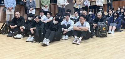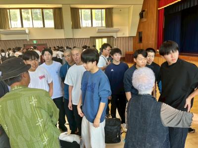 迫力のある太鼓の響きが会場いっぱいに広がり、生徒たちは思わず体の芯まで響くようなリズムに引き込まれていました。