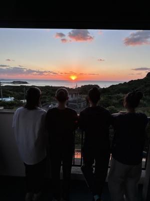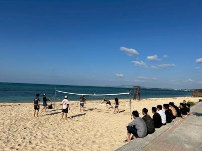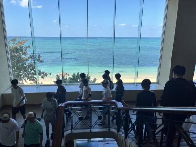 沖縄の海はどこまでも広く、透き通るように美しく、生徒たちは海を見た瞬間に歓声を上げていました