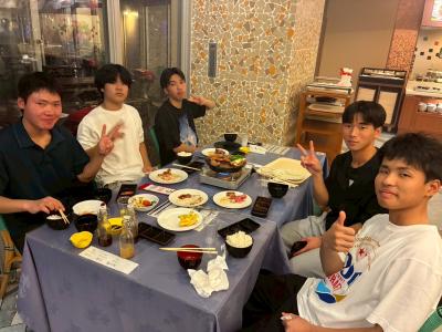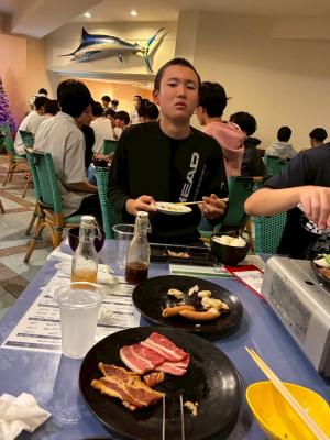 焼きたてのお肉をほおばりながら、「今日一日すごかったね!」と楽しそうに話す姿が印象的です