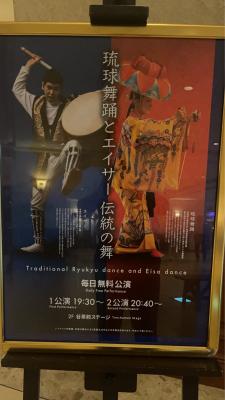 夕食の後は、ステージで沖縄伝統のエイサーと琉球舞踊の披露がありました。