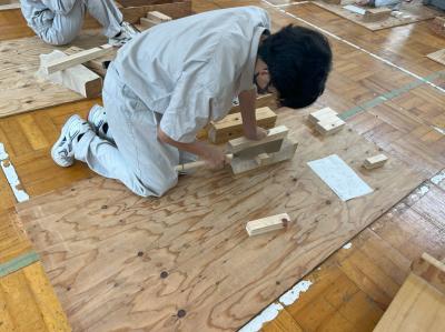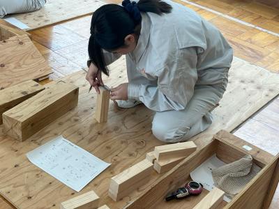建築コースでは、のこぎりやノミ、カンナなどの道具を使い、