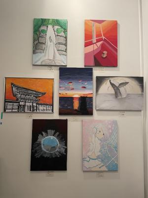 羽咋工業高等学校美術・デザイン部では、平面作品を7点展示してあります。3年生は最後の県総文になります。どれも力が入った良い作品ばかりです。