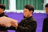 能登半島地震を経験し、人と普通が大切なものであることに気づかされ、復興の道 途中の私達にも、春が感じられる今日。羽咋市長 岸 博一 様、PTA会長 平田 勇輔 様、同窓会会長 河崎 祐彦 様、をはじめ、多くのご来賓、保護者の皆様のご臨席のもと、第60回卒業証書授与式を挙行できますことは、この上のない喜びであります。ただ今、百十六名の生徒に卒業証書を授与いたしました。この生徒達は、コロナ禍から震災へという、激動の三年間を必死に生き抜き、卒業する生徒達であります。皆さんに、敬意を表するとともに、心からお祝いを申し上げます。