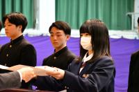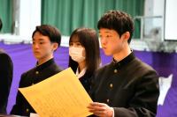皆さんは、「自律と創造」を、建学の精神に掲げた本校において、勉強、部活動、学校行事、資格取得など多くの活動において、切磋琢磨し、立派に大人へと成長してくれました。今日の、この人生の節目に当たり、卒業生から家族へ、お世話になった方々へ、感謝の気持ちをしっかりと伝えてください。