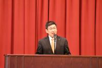 卒業生の皆さん、最後に一つお願いがあります。わが母校、羽咋工業高校で自分が成長したと感じたら、今日、あの校門を出るときに、くるりと振り向いて「有り難うございました」と学び舎に礼をしていってください。そして胸を張って、社会に一歩踏み出して行ってください。