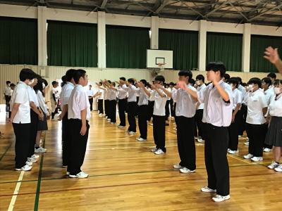 壮行式後に、羽工祭の説明会があり、今年の目玉のダンスを校長先生が実演してくれました!