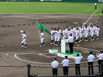 本校野球部は全員で声を出し、1番元気を出して入場行進をしました。