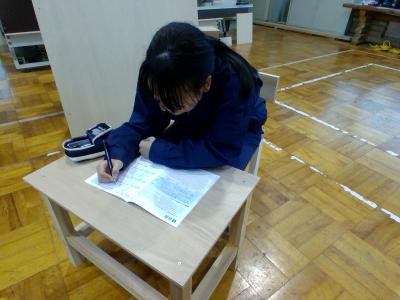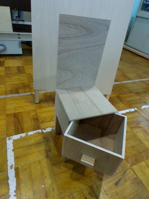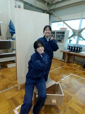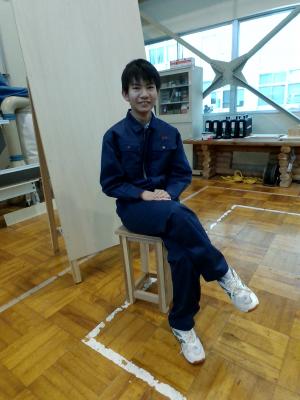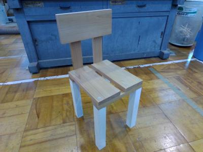 秋頃から設計、加工、組立と毎週少しずつ作業を進め、1年生が頑張って椅子を製作しました。