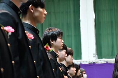 皆さんは、「自律と創造」を、建学の精神に掲げた本校において、勉強、部活動、学校行事、資格取得など多くの活動において、切磋琢磨し、立派に大人へと成長してくれました。今日の、この人生の節目に当たり、卒業生から家族へ、お世話になった方々へ、感謝の気持ちをしっかりと伝えてください。