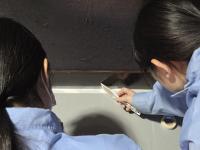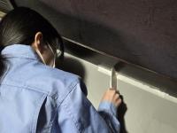 隙間が狭いため充填材が十分に入っていかず、「難しい~」と苦戦しながら少しずつ作業していました。