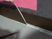 マスキングテープでタイルと幅木を養生し、充填材を注入します。