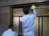 仕上げにガラス戸をきれいに拭き掃除して、作業終了です!!